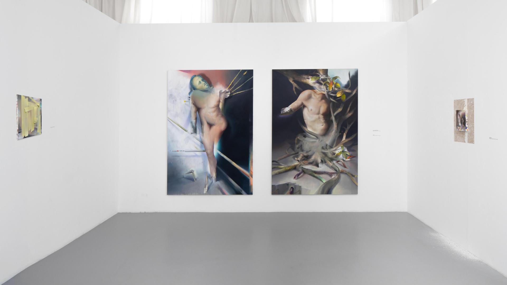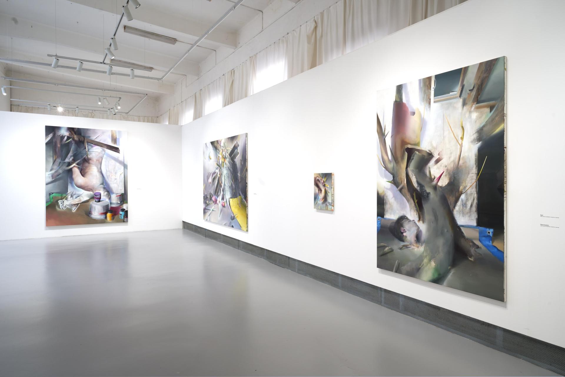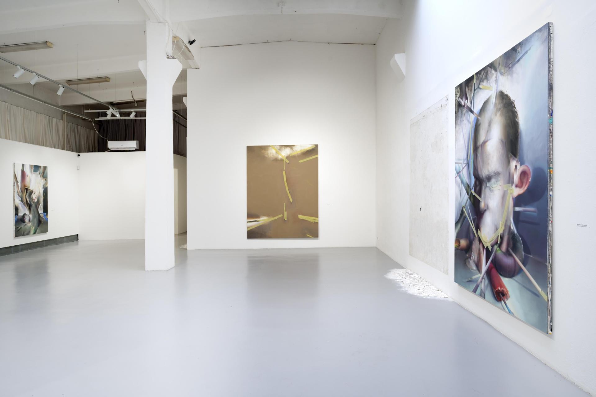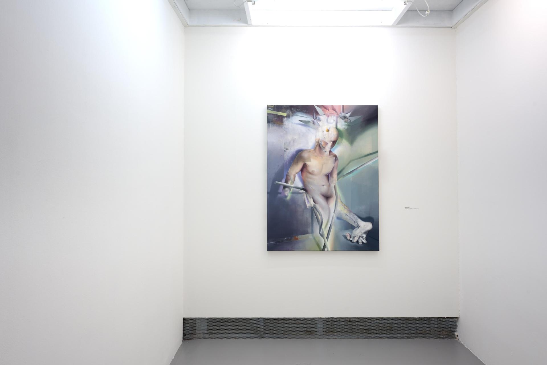 Marek’s approach to painting seems similar in principle. His paintings do not seek original sources, but rather structures of meaning. They tell us, in the manner of Crimp, that beneath every image there is always already another image. In the short post-Covid period, when the artist immersed himself most deeply in exploring the social memory of humanity and deposited individual synapses on canvas as if on a photosensitive plate, it seemed as if his almost surgically precise technique would be helpful in this endeavour. In time, however, he realised the limits of this modus operandi and turned to a technique that suppresses techné, while in return being in closer symbiosis with the central message of the images, rendering it easier to express the volatile essence of memory, its inherent unreliability, brevity and fragmentary nature. In other words, this technique allows him to transform his own canvas into a palimpsest. Marek mastered the process of layering and subsequent washing out while still at school, and his inner doubts often obliged him to return to specific works, piling up pentimenti, making changes and corrections. From a certain moment onwards, however, he no longer felt the need to erase these traces. Disconnected fields – sometimes illusory paintings with elements of trompe-l’oeil, sometimes textures accentuating materiality – became not only an ideal medium for associative motifs, but also an eloquent metaphor for his thinking via the image.