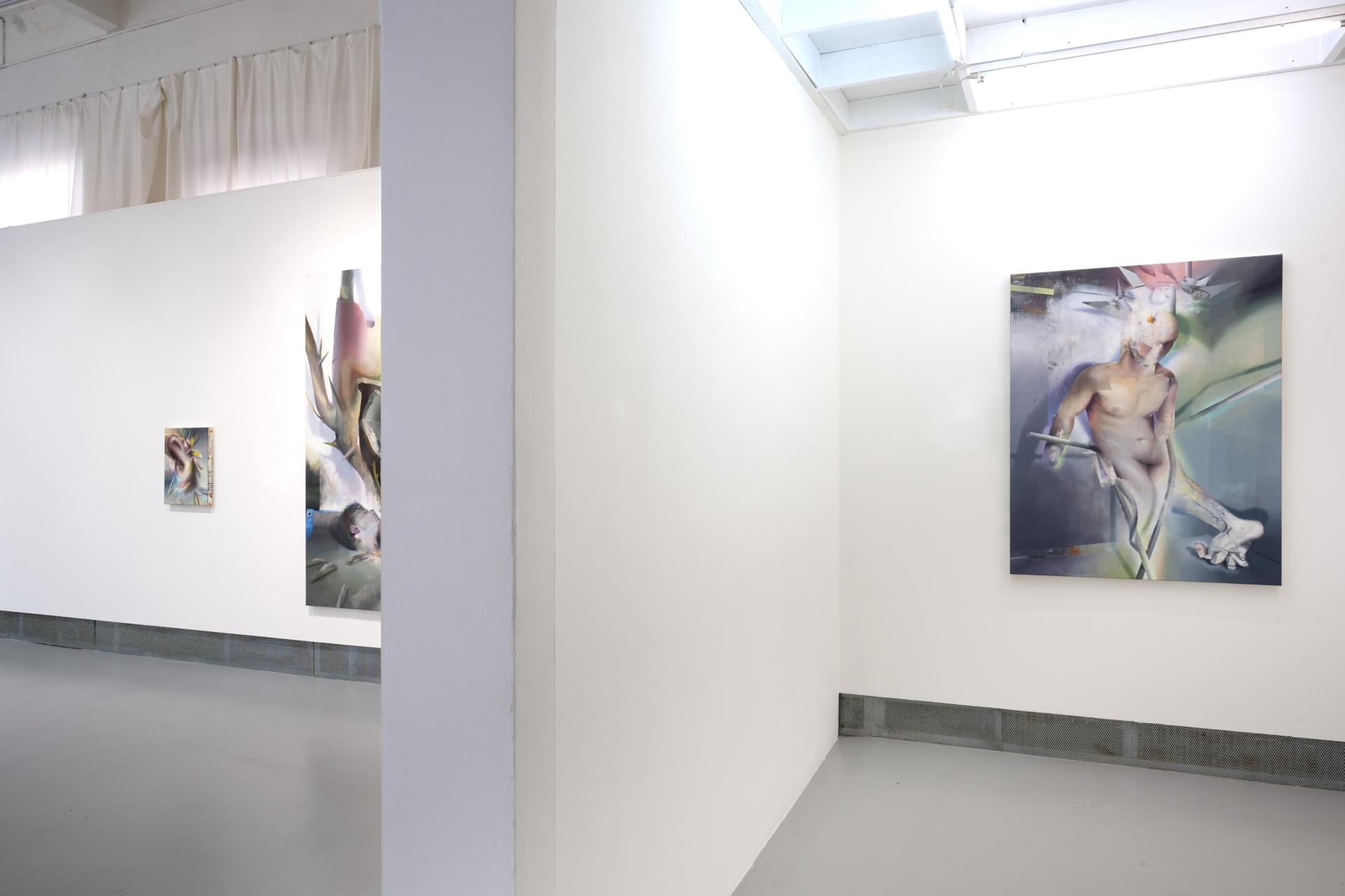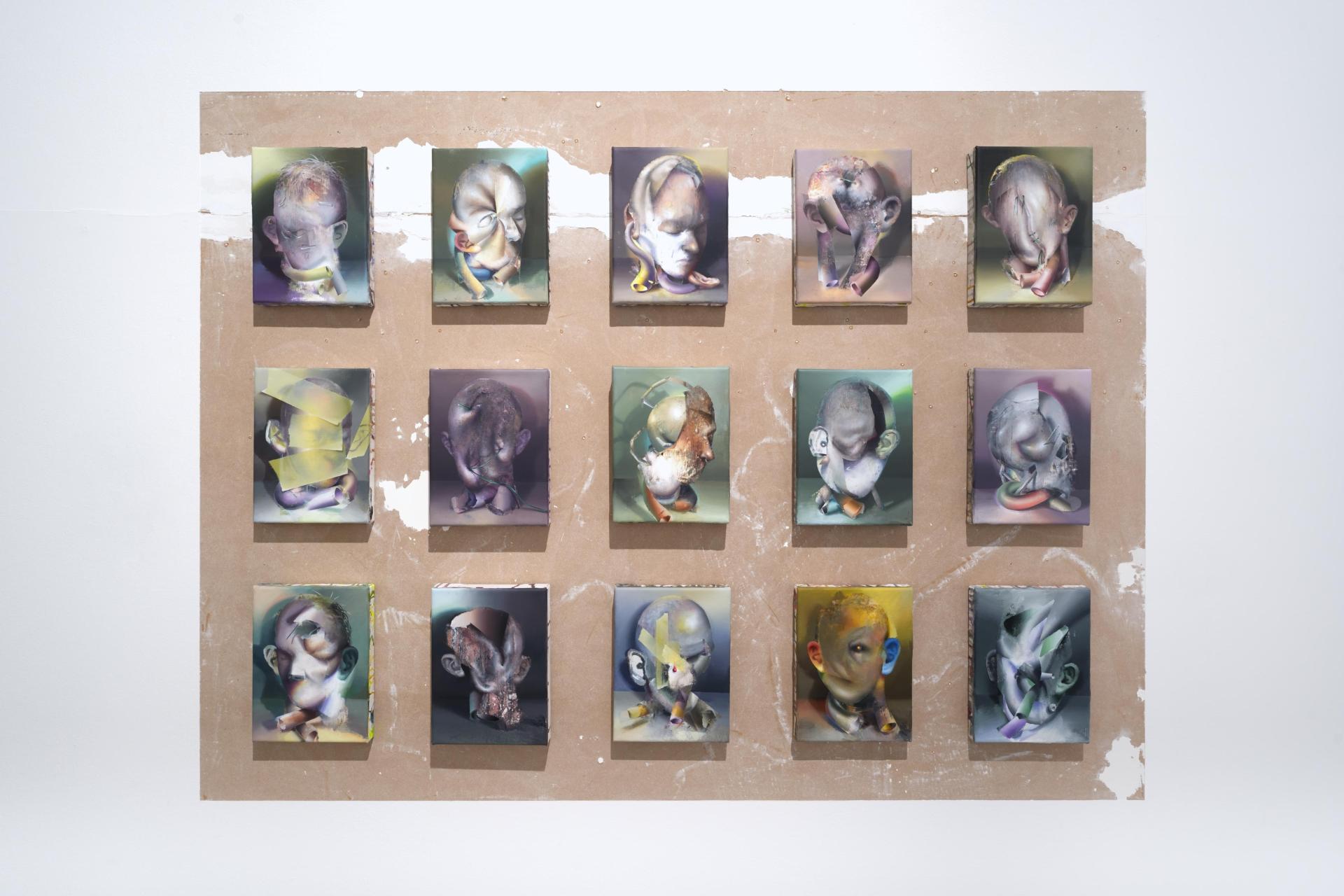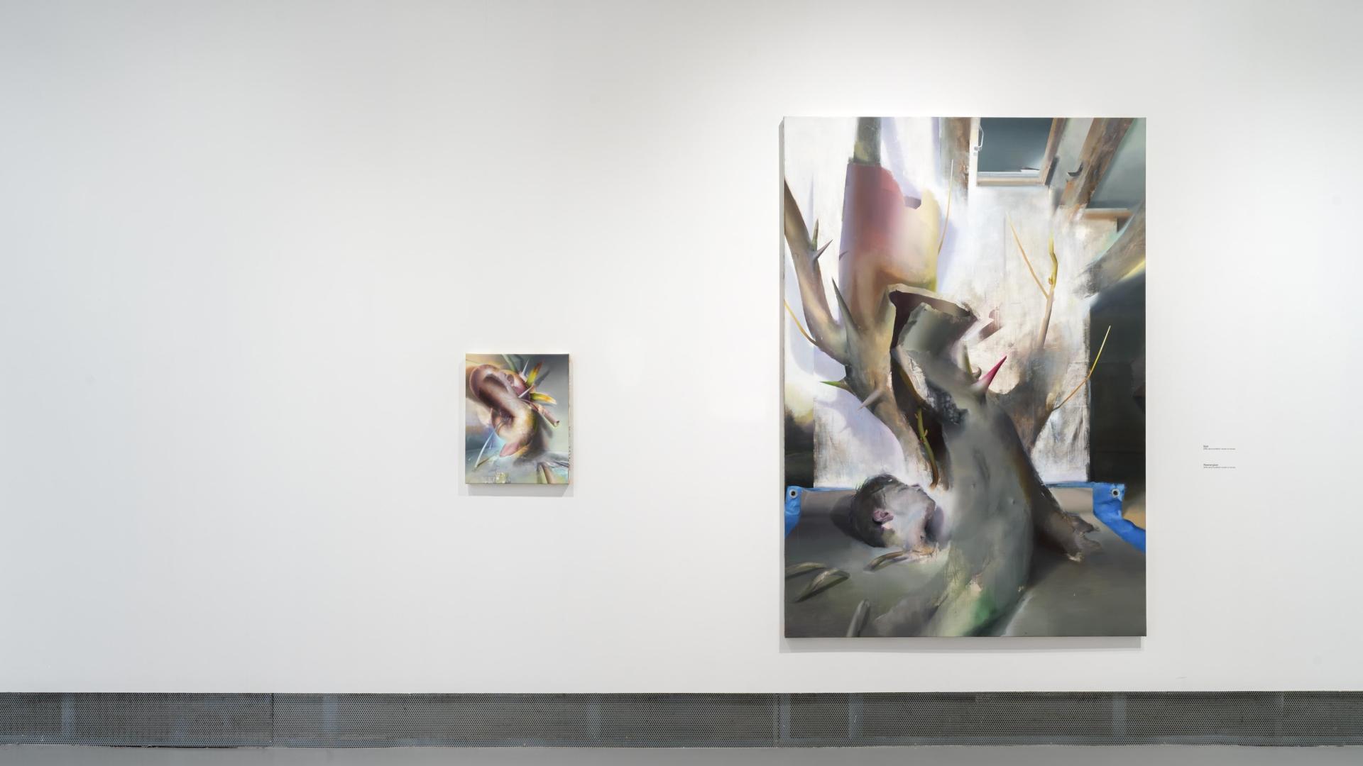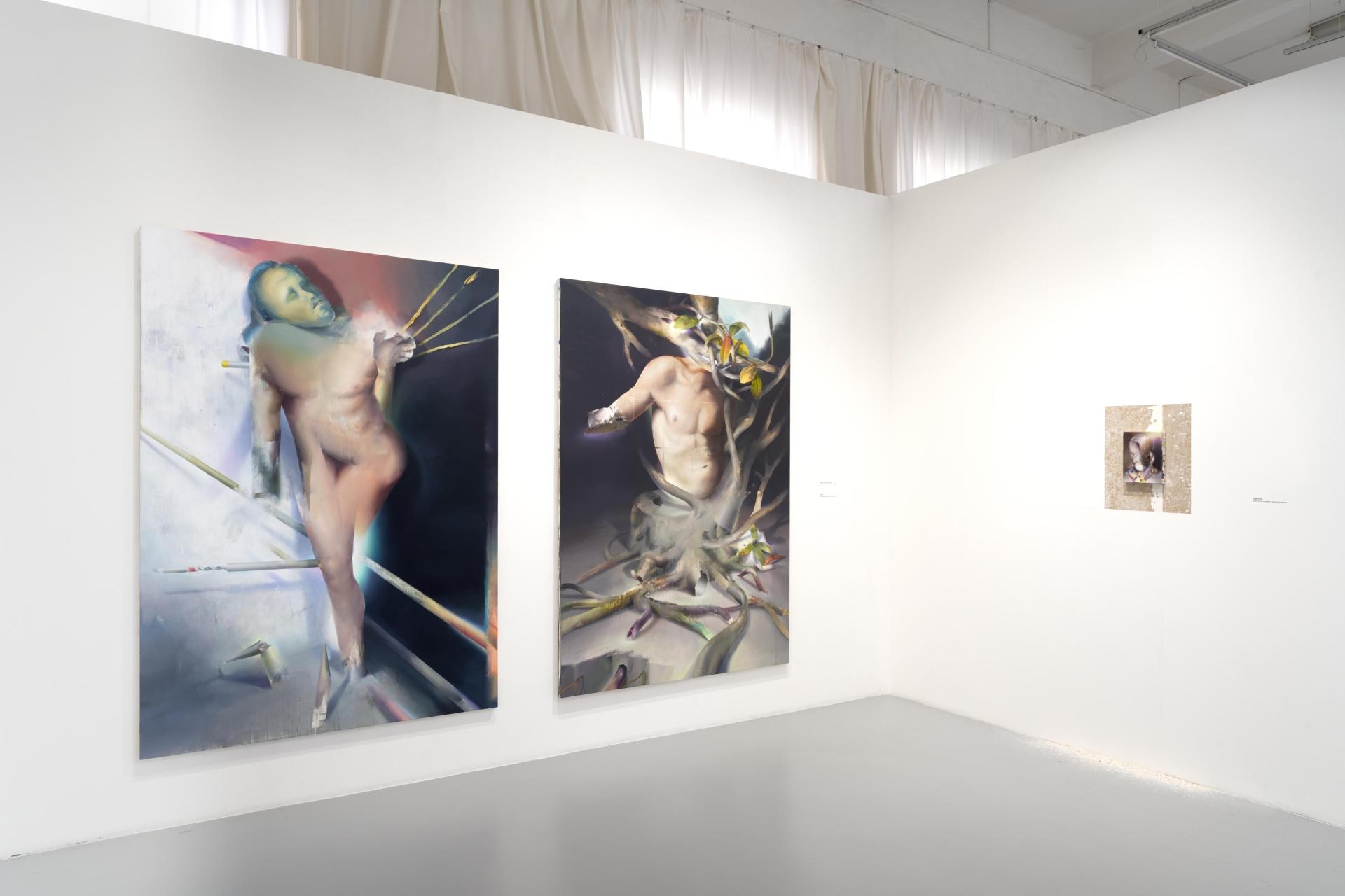Marek’s approach to painting seems similar in principle. His paintings do not seek original sources, but rather structures of meaning. They tell us, in the manner of Crimp, that beneath every image there is always already another image. In the short post-Covid period, when the artist immersed himself most deeply in exploring the social memory of humanity and deposited individual synapses on canvas as if on a photosensitive plate, it seemed as if his almost surgically precise technique would be helpful in this endeavour. In time, however, he realised the limits of this modus operandi and turned to a technique that suppresses techné, while in return being in closer symbiosis with the central message of the images, rendering it easier to express the volatile essence of memory, its inherent unreliability, brevity and fragmentary nature. In other words, this technique allows him to transform his own canvas into a palimpsest. Marek mastered the process of layering and subsequent washing out while still at school, and his inner doubts often obliged him to return to specific works, piling up pentimenti, making changes and corrections. From a certain moment onwards, however, he no longer felt the need to erase these traces. Disconnected fields – sometimes illusory paintings with elements of trompe-l’oeil, sometimes textures accentuating materiality – became not only an ideal medium for associative motifs, but also an eloquent metaphor for his thinking via the image.